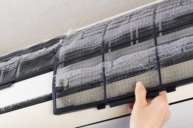 フィルターのホコリ詰まりは、冷暖房効率の低下、電気代の高騰、故障リスクの増大という多くの不具合を引き起こします。フィルターを取り外し、ホコリが詰まっていないか確認してください。2週間に一度の清掃が理想的です。